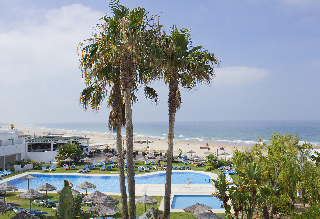 Hotel ubicado en primera línea de mar en frente de la Playa de la Fontanilla, ya escasos minutos caminado del casco historico de Conil. Rodeado de un parque y de pinares, cuenta con grandes zonas ajardinadas. Resaltan sus agrandas terrazas y piscinas con hamacas con espectaculares vistas al océano.