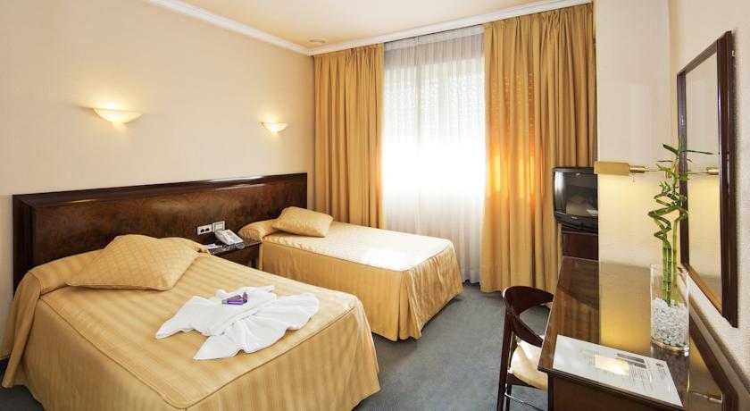 Este hotel está ubicado en el corazón de Vigo, cerca del distrito comercial, del casco viejo y de la zona portuaria. Esta localización privilegiada hace que sea perfecto tanto para viajes de negocios para vacaciones en la zona turística de las Rías Baixas. La playa de Samil queda a siete km. Este hotel urbano climatizado se aloja en un edificio de estilo moderno con doce plantas y ciento cuatro habitaciones rehabilitadas y ciertas con vistas a la Ria de Vigo. Dispone de un remodelado hall con recepción 24h, caja fuerte, armario, elevador y servicio de lavandería. Va a poder gozar de sus comidas y bebidas en el bar y restaurant del hotel, y hacer empleo de las instalaciones para conferencias y la conexión a Internet WiFi. Dispone de un parking de dos plantas con capacidad para treinta vehículos. Las habitaciones estándar con dos camas individuales tienen una decoración fácil y ventanas de doble acristalamiento. Las habitaciones cuentan con baño privado con bañera, secador para el cabello, espéculo producto cosmético, aire acondicionado, calefacción central, teléfono de línea directa, TV vía satélite, minibar, caja fuerte gratis y conexión a Internet WiFi sin coste. Todas y cada una están pertrechadas con cierre electrónico. El desayuno se sirve a diario en forma de bufet. Si llega desde la autopista AP-nueve, tome la primera salida cara la calle Buenos Aires. Una vez en Travesía de Vigo, prosiga de frente hasta Vía Norte. Si viene desde la autopista A-cincuenta y dos, al llegar a la Plaza de España, gire a la derecha cara Gran Vía. Después, gire nuevamente a la derecha cara Urzáiz y prosiga hasta la plaza Fernando El Católico. Gire totalmente en la glorieta y tome la primera salida a la derecha cara la calle Escultor Gregorio Fernández. Después, prosiga hasta Vía Norte.