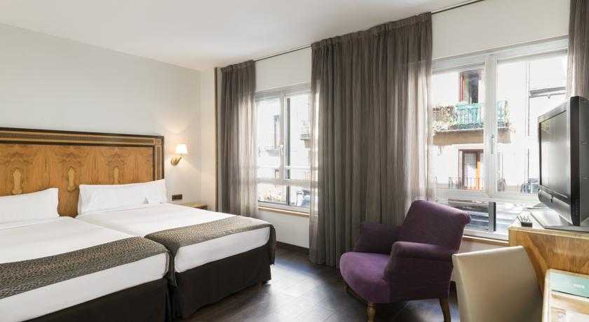 Este hotel está ubicado en el centro de la espléndida metrópolis madrileña, a pocos minutos andando del Palacio Real y de la Plaza Mayor. Merced a su próxima localización a la Gran Vía, es un punto ideal para salir de compras y de marcha de noche. A únicamente cien metros de distancia tiene múltiples paradas de transporte público. El aeropuerto de Barajas está a una distancia aproximada de quince quilómetros. Este hotel urbano dispone de un total de ciento treinta y dos habitaciones repartidas en 6 plantas. En el hall de entrada del hotel hallará un elevador y un área de recepción abierta las veinticuatro horas del día que le ofrece servicio de caja fuerte, de cambio de divisa y de armario. Además de esto, dispone de una cafetería, una sala de TV, una sala de estar, una peluquería, un bar de copas y cócteles y un restaurant a la carta climatizado. Como posibilidades auxiliares se le ofrecen conexión a Internet y servicio de habitaciones, de atención médica y de lavandería. A su predisposición hay tanto plazas de garaje como de parking.Las agradables y agradables habitaciones disponen de baño con secador para el cabello. Además de esto, asimismo cuentan con teléfono de línea directa, TV vía satélite, radio, conexión a Internet, minibar, caja fuerte de alquiler y aire acondicionado-calefacción central (regulables por uno mismo). Los huéspedes van a poder saborear el desayuno en forma de bufet.