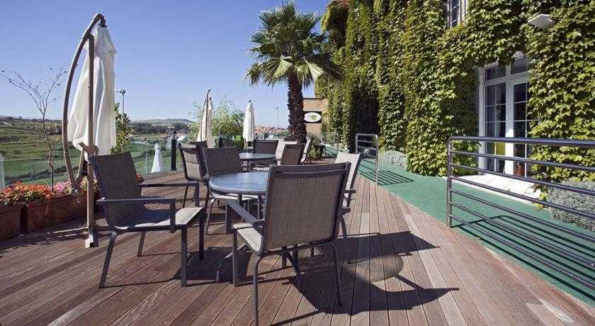 Completa sus instalaciones con pub, su restorán El Gran Balcón sirve platos de cocina mediterránea y cantábrica. Ofrece preciosas vistas a la campiña de los aledaños, asimismo dispone de terrazas, piscina exterior climatizada y cuenta con servicio de transporte de clientes del servicio, zona wi-fi y, en anejo, con pista de tenis, pádel y una piscina olímpica. Centro de Spa, renovado y ampliado, con duchas de contraste térmico, jacuzzi para 8 y para 2 personas, tumbonas de relax, pediluvio, baño de vapor, gimnasio y solarium, aparte de servicio de masajes. Campo de Golf a veinte minutos.