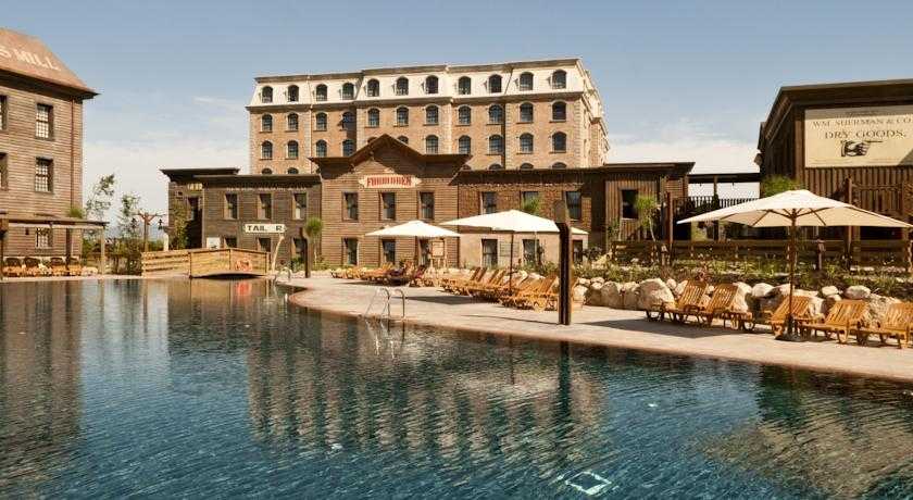 Establecimiento construido en dos mil nueve con acceso directo al Port Aventura por el área Far West ubicado 4kms de Salou y 12kms de Tarragona. Consta de cinco plantas en la edificación primordial y tres en el anejo con más de quinientos habitaciones, incluyendo diez para personas con movilidad reducida. Dispone de un servicio de Recepción 24hrs, cafetería, bares, tiendas y WiFi en las zonas comunes y la línea de ADSL gratis en las habitaciones, restoranes y puesto en la zona de las piscinas. Parking en la zona Todos y cada uno de los clientes del servicio alojados tienen descuento en la entrada a Costa Caribe Aquatic Park.