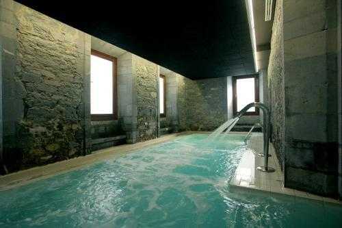 Situado en el corazón de Orduña, este hotel ocupa un edificio neoclásico del s. XVIII, con rincones que evocan el recuerdo de una historia y una tradición que se funden armónicamente con la modernidad y calidad de unas instalaciones concebidas para el reposo.Antiguamente, este sitio era donde se realizaba el control de los ingresos de mercaderes y mercaderías entre el puerto de Bilbao y Castilla. Hoy en día, la extensa terraza sobre los arcos del imponente edificio de la vieja aduana, es un sitio ideal para gozar de instantes de relax. Las habitaciones, de estilo vanguardista, disponen de bañera de hidromasaje.El balneario, con aguas mineromedicinales del manantial de la Muera de Arbieto, ofrece las últimas técnicas para el cuidado de la salud y la belleza.