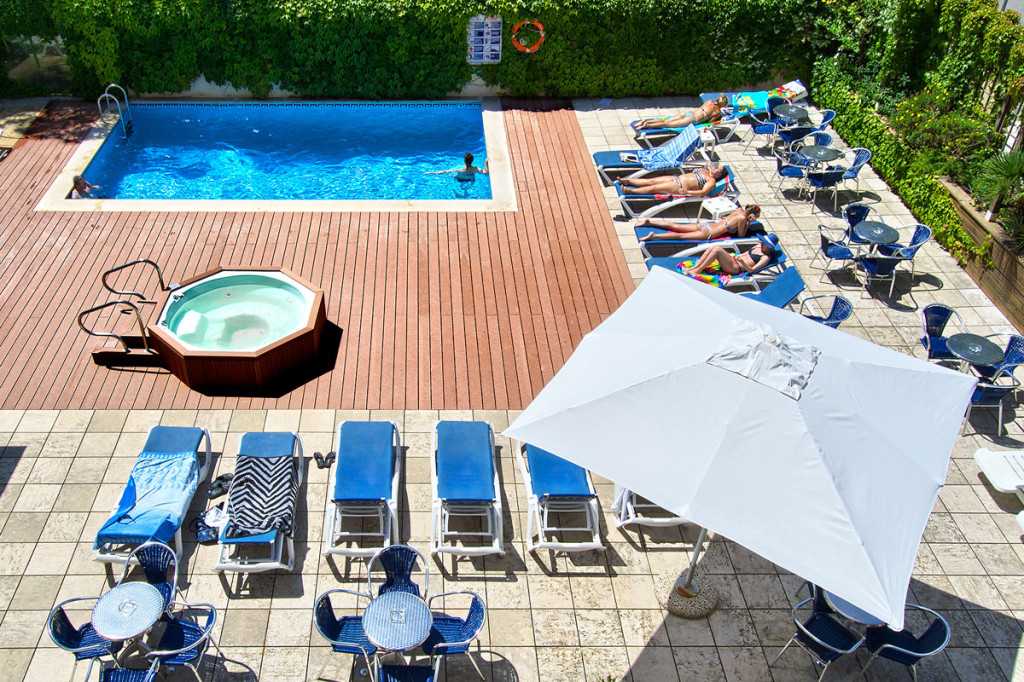 Este hotel, ubicado en Blanes, al comienzo de la Costa Brava, está a solo sesenta m de la bonita playa de S’Abanell. Últimamente renovado y dirigido por una familia al cliente del servicio se le da un trato de los más familiar y agradable para pasar las vacaciones. Dispone de 2 piscinas, jacuzzi, pistas de tenis y jardín. Para las familias con pequeños, el hotel está amoldado a las necesidades de los más pequeños. Ofrece parque infantil y piscina para ellos. Se encuentra a unos veinte minutos a pie del centro de Blanes y diez minutos en vehículo de los jardines botánicos de Pinya Rosa y Marimurta
