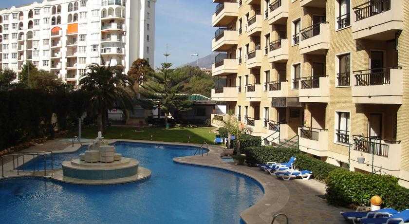 Estos pisos, ubicados en la zona central la carretera ribereña de Fuengirola y rodeados de largas y cálidas playas, están situados a solo veinte minutos a pie del centro de la urbe de Fuengirola y a cinco minutos a pie del renombrado Los Boliches. El aeropuerto Pablo Ruiz Picasso se halla a unos treinta km del apartahotel y el aeropuerto de Almería, a unos doscientos treinta y cuatro km.El interior y los aledaños del complejo se han desarrollado para ofrecer una experiencia imborrable para toda la familia. Los huéspedes del apartahotel, dotado de aire acondicionado, disponen de instalaciones como caja fuerte, elevador, sala de juegos, sala de TV, parque infantil, cafetería y parking.Los pisos completamente amueblados tienen baño privado con ducha y bañera, cama doble, cocina americana con nevera, hornillos, microondas y cafeteratetera y terraza o bien balcón particulares con vistas al mar. Se ofrecen además de esto otras posibilidades como TV vía satélite, conexión a Internet, caja fuerte, set de plancha, aire acondicionado regulable y calefacción central.Hay piscina al aire libre con zona de baño infantil y bar de temtempiés al lado de la piscina, aparte de terraza con tumbonas. Los huéspedes asimismo pueden arrendar tumbonas y sombrillas por un costo auxiliar en la playa de arena próxima.